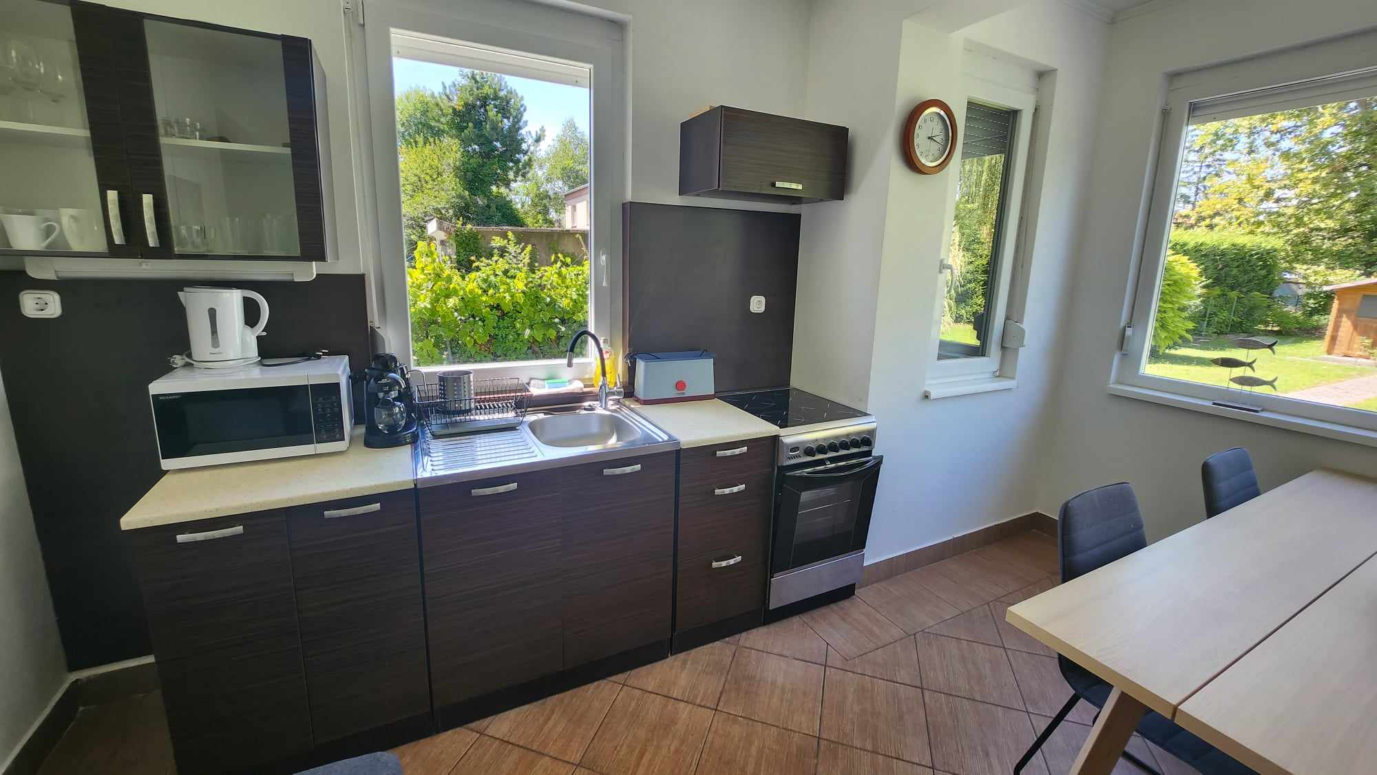 A konyha modern, jól felszeret ( kávéfőző, vízforraló van ).