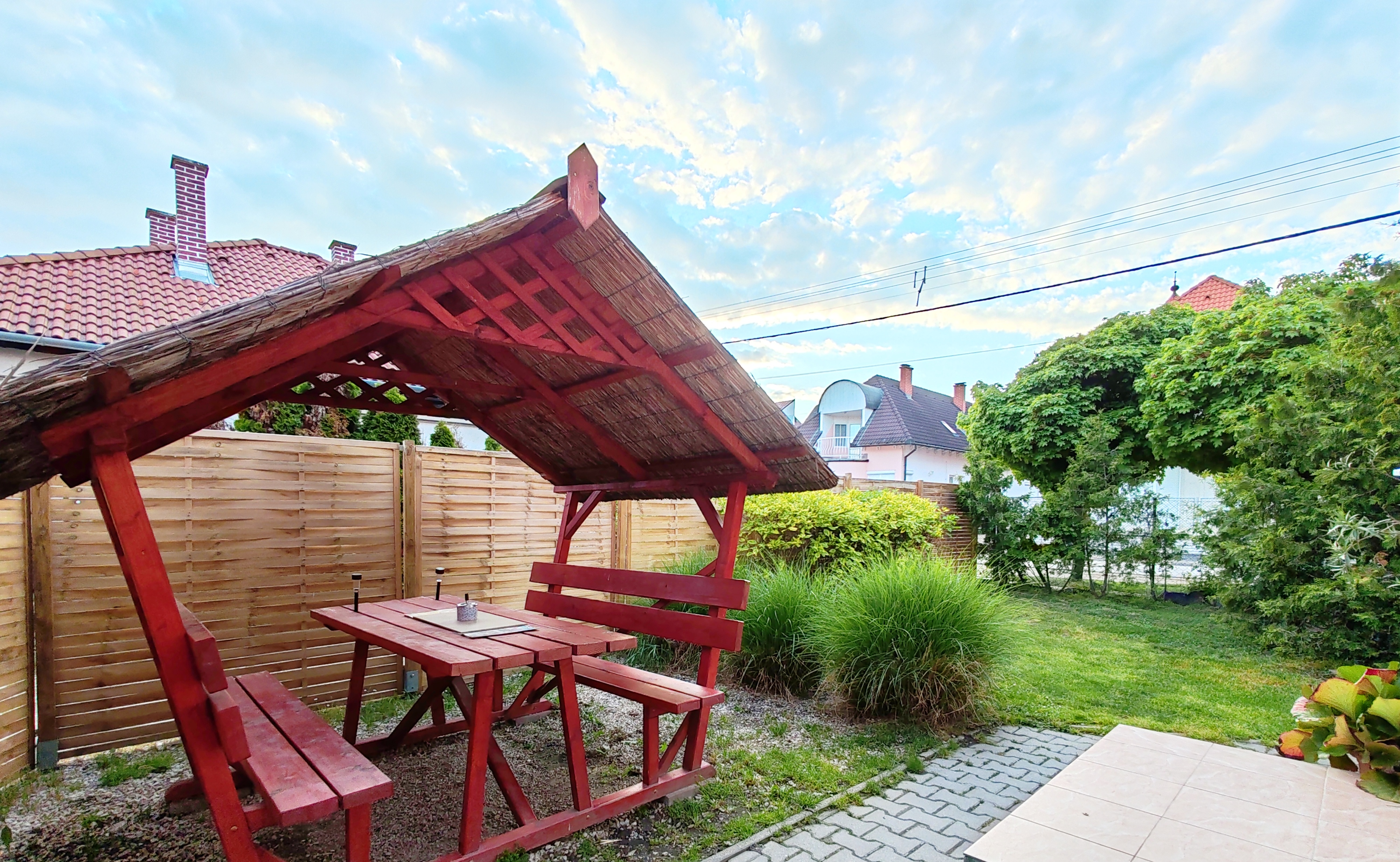 Rendelkezik egy kis kiülős kertrésszel az esti beszélgetésekhez, illetve sütögetési lehetőség is biztosítva van.