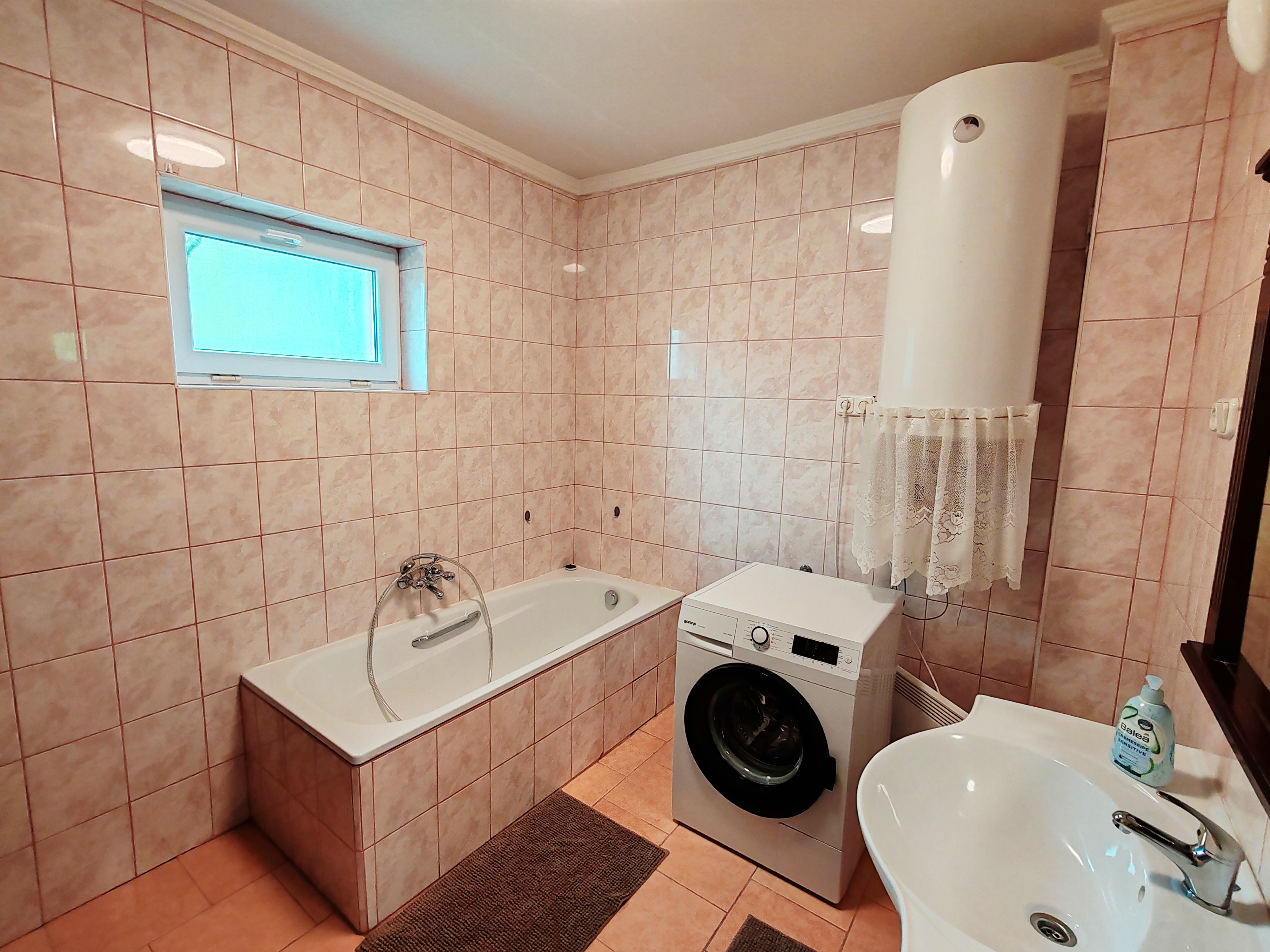 Az alsó szinten kádas fürdőszoba található, valamint 1-1 wc külön helységben.