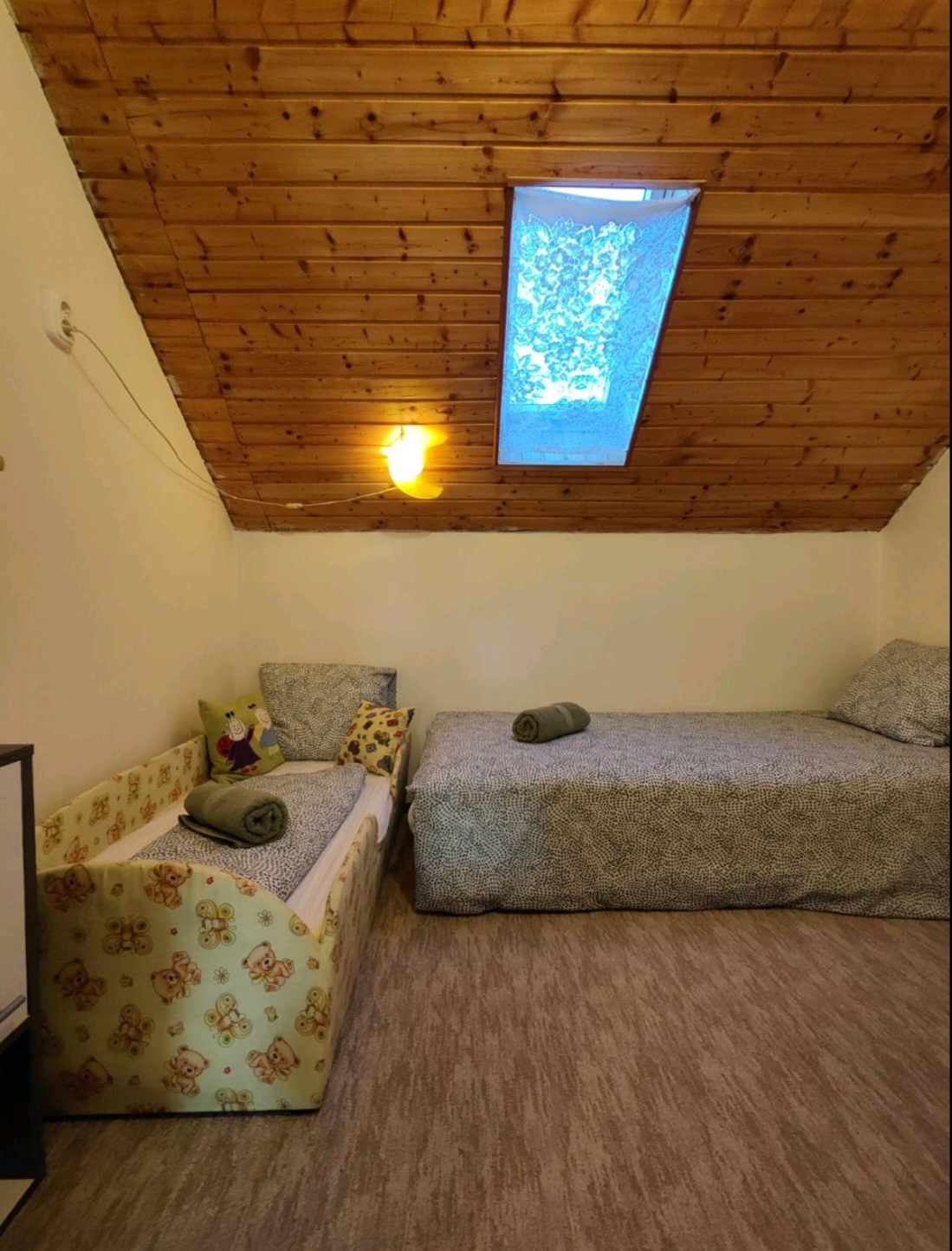 Az apartmanban három hálószoba található( egy a földszinten ,kettő pedig az emeleten).