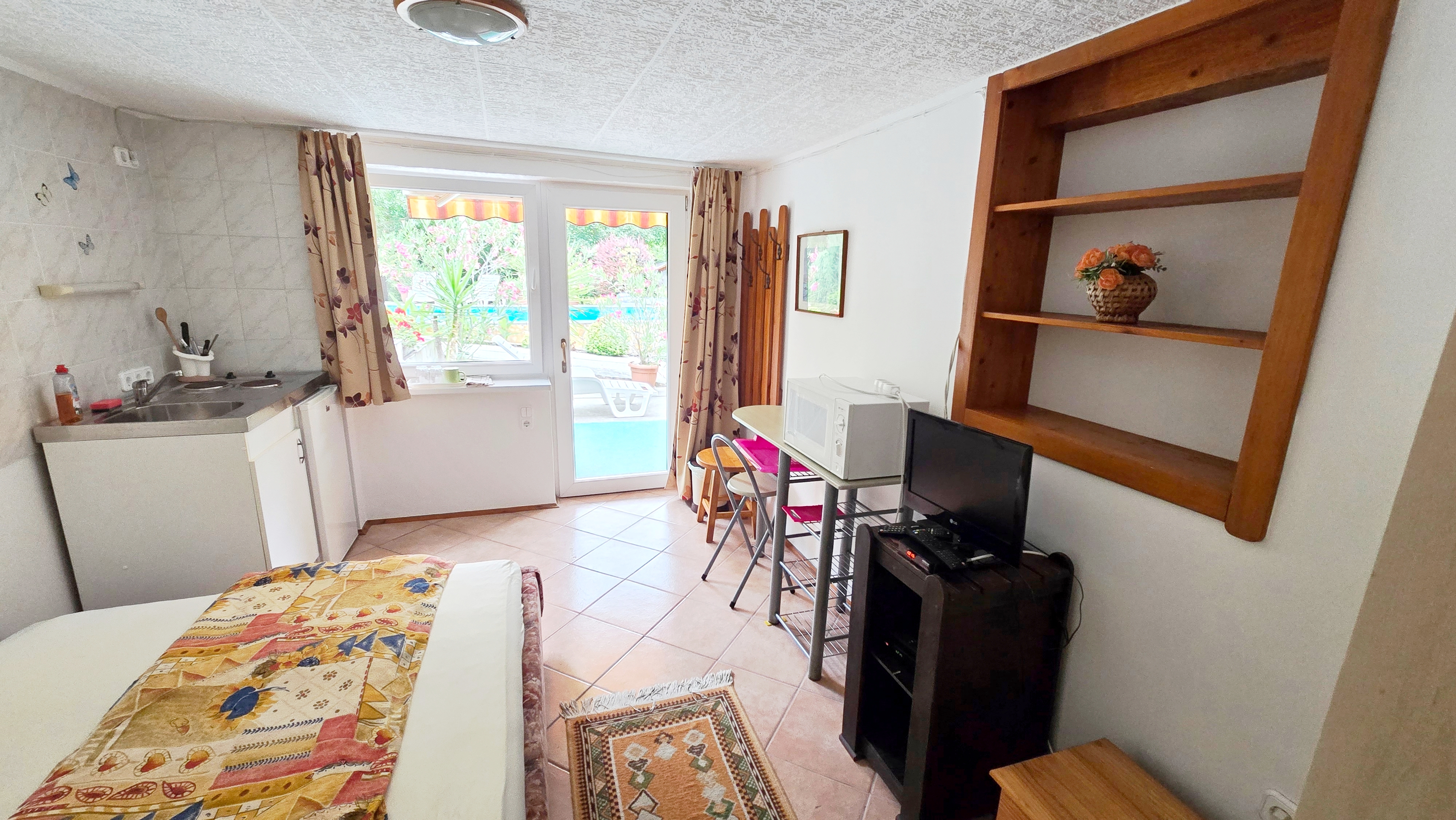 Az apartman közvetlenül a medencénél található.