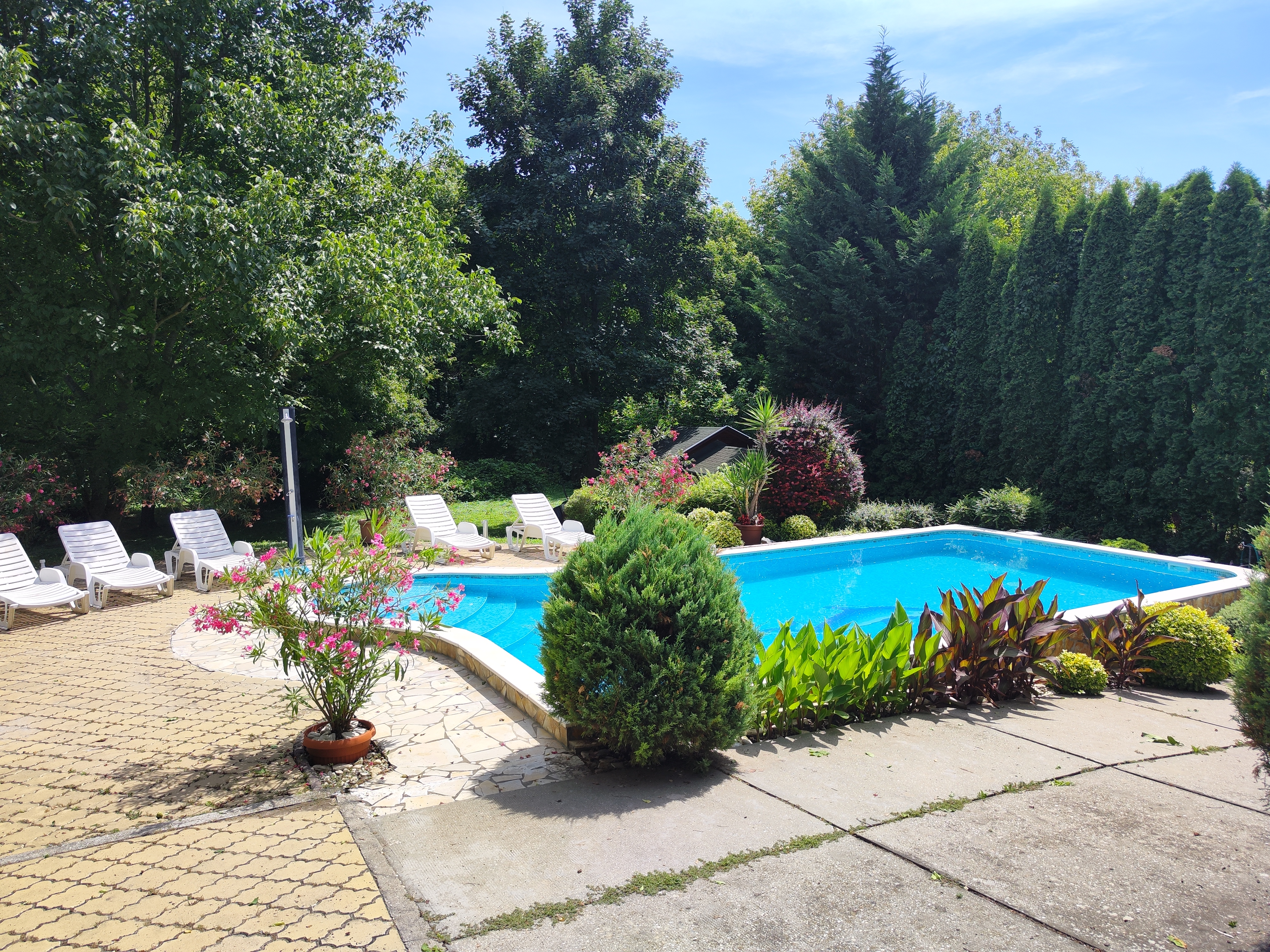 A vendégház gyönyörű környezetben, fákkal , virágokkal díszített udvarral várja vendégeit.
