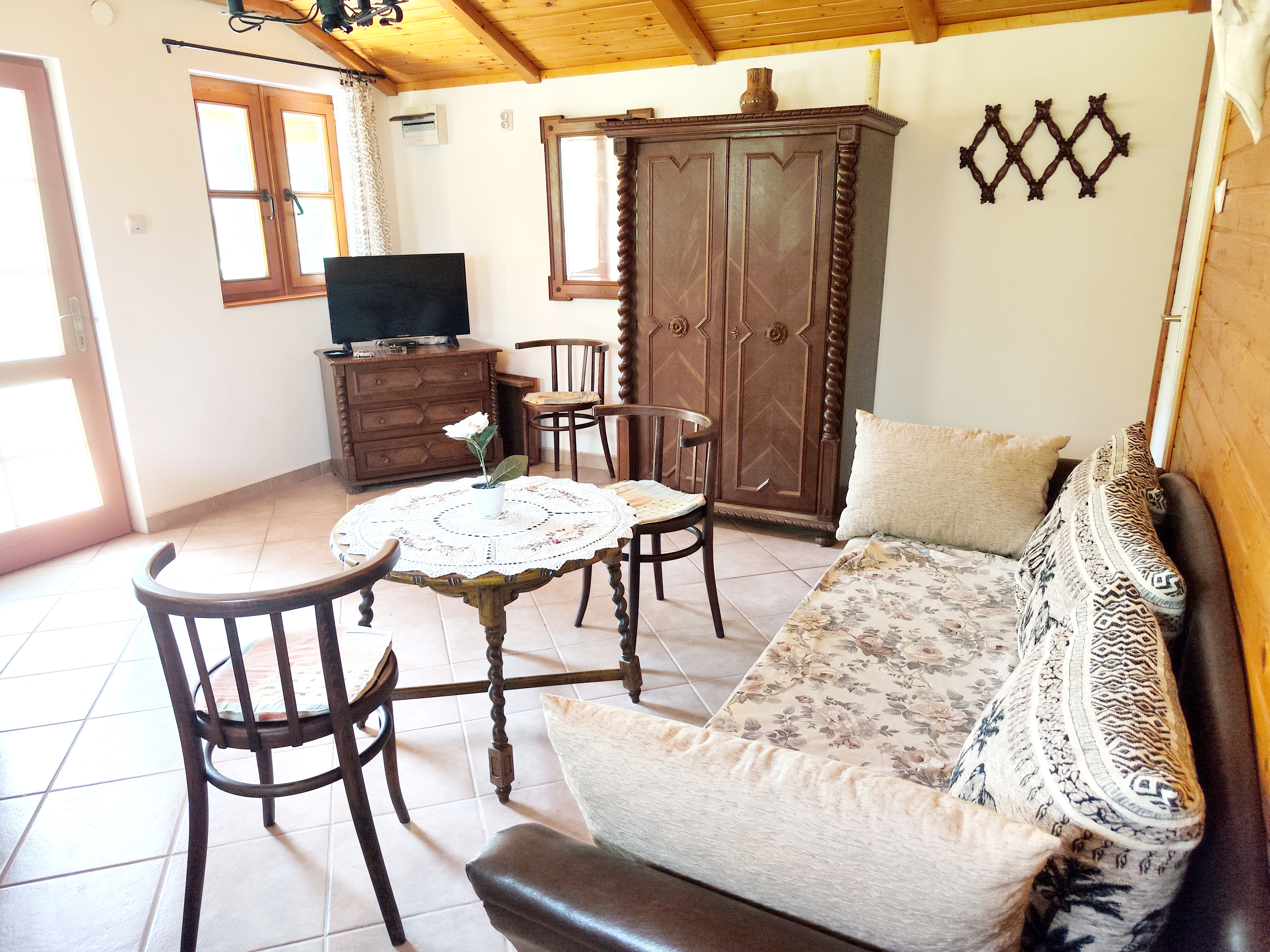 A házban található egy szoba, dupla ággyal. Valamint van egy kihúzható kanapé, amely igény szerint további két ember elhelyezését biztosítja, így összesen 4 főt tud fogadni.