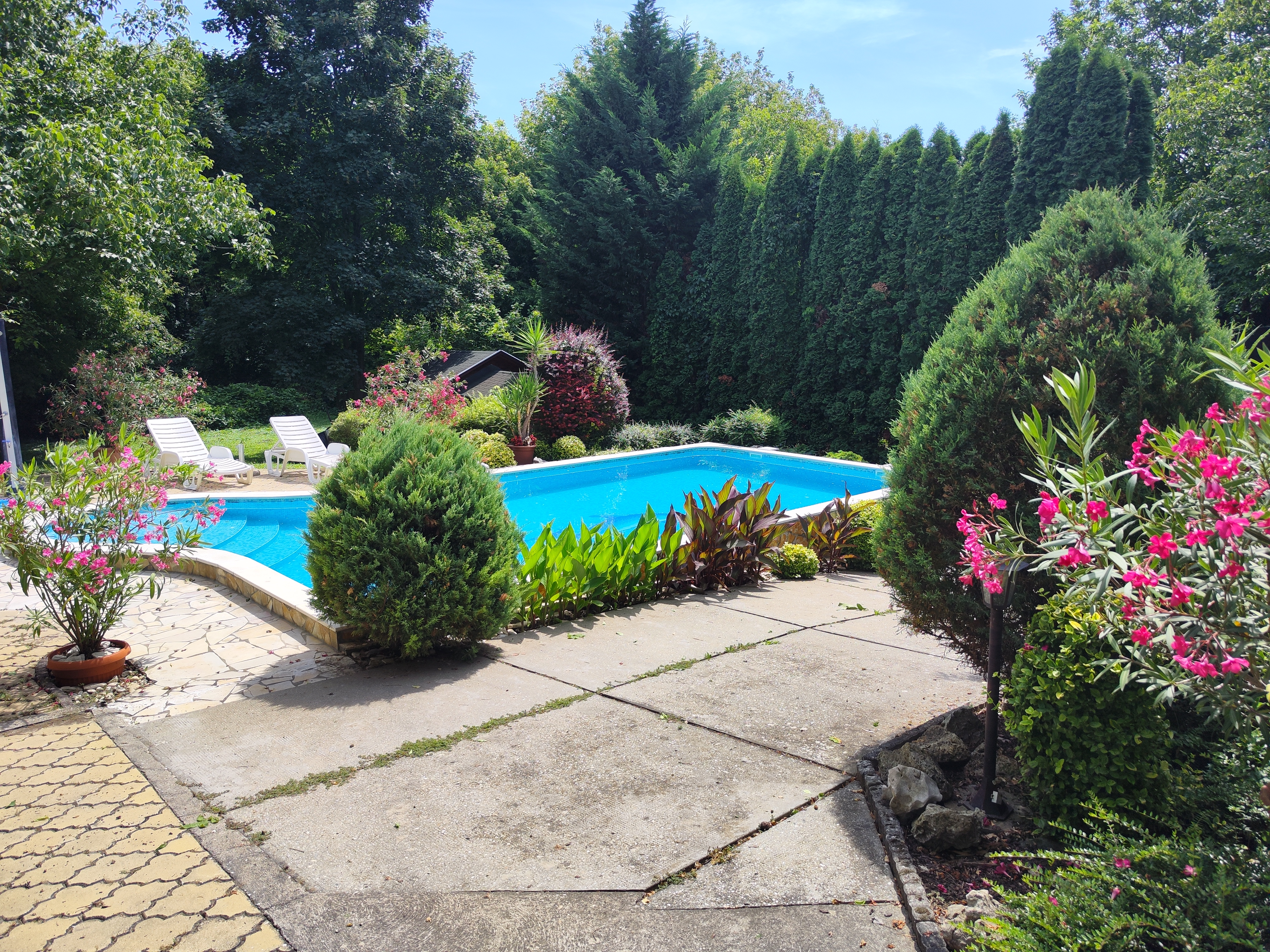 A vendégház gyönyörű környezetben, fákkal , virágokkal díszített udvarral várja vendégeit.