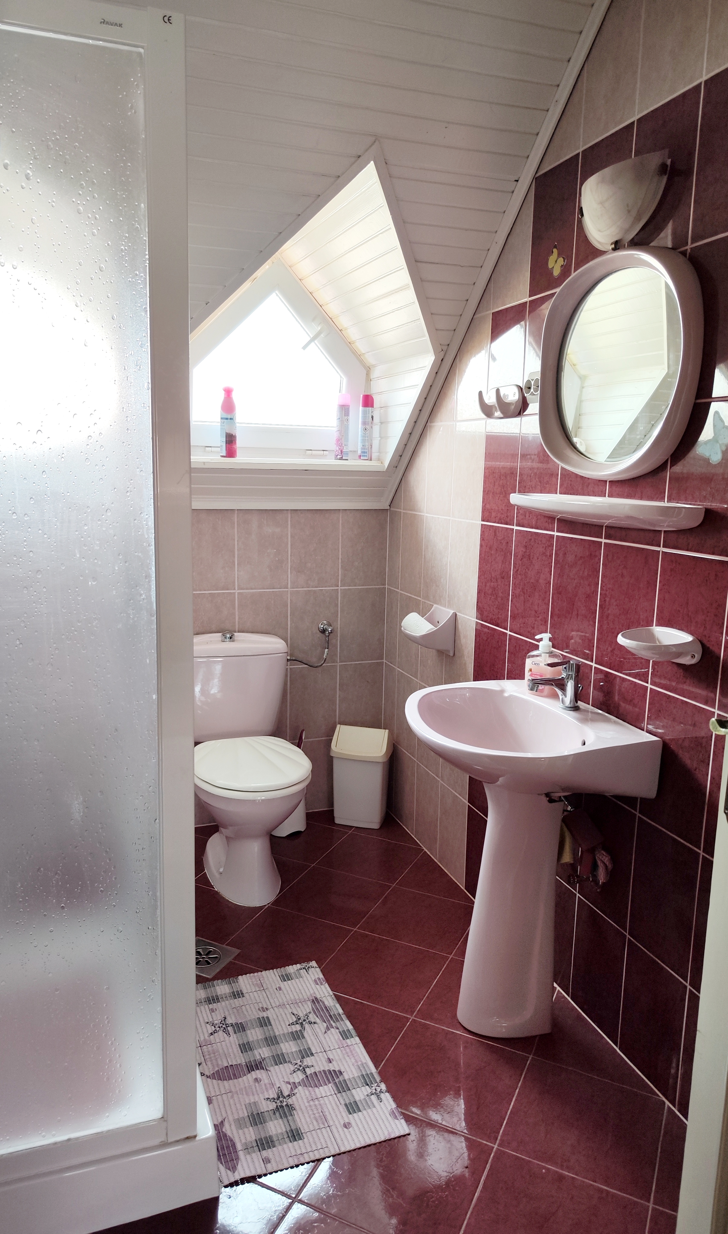 Összesen 3 szoba található a felső szinten, így összesen 6 fő elszállásolására alkalmas. Fürdőszoba és wc egy helységben található.